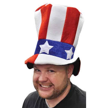 Soft large top hat to show the world that you love the good old USA. Featuring the red, white and blue starts and stripes.