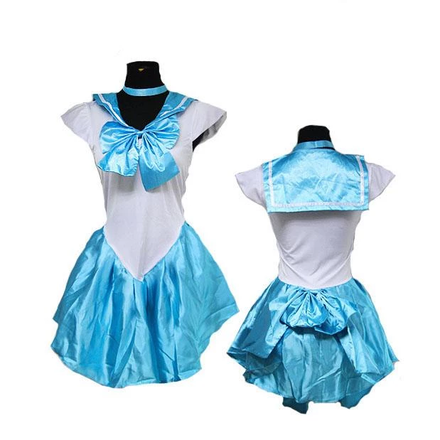 By the power of Mercury! This gorgeous little aqua blue and white dress is perfect for your next cosplay or costume party. Blue Bow attached at the chest and lower back and blue sailor collar. Pair with our blue anime wig and long blue boots to complete the look.
