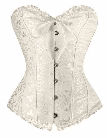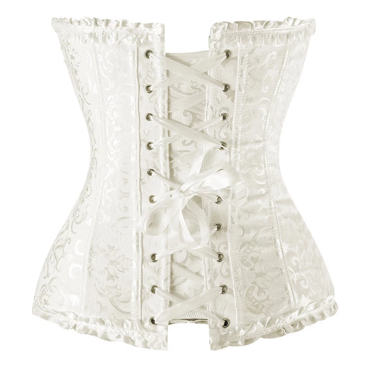 This stunning pure white corset features a soft swirl print over the entire corset.