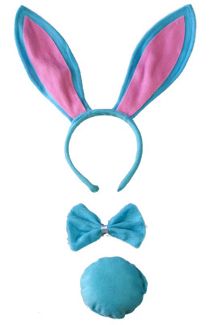 Super cute Baby Blue Bunny Accessory kit includes Blue Coloured Bunny Ears, Blue Elasticated Bowtie and a Plush Blue Tail.