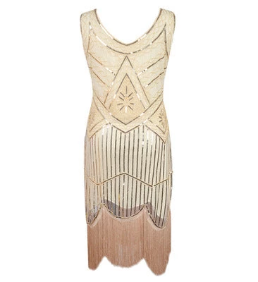 AnneCart Cream And Gold Sequined 1920’s Gatsby Dress