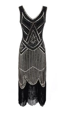 Annecart Dresses Black And Silver Beaded 1920’s Gatsby Dress