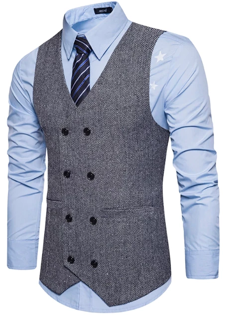AnneCart Light Grey Tweed Double-Breasted Men’s Vest Jackets & Vests