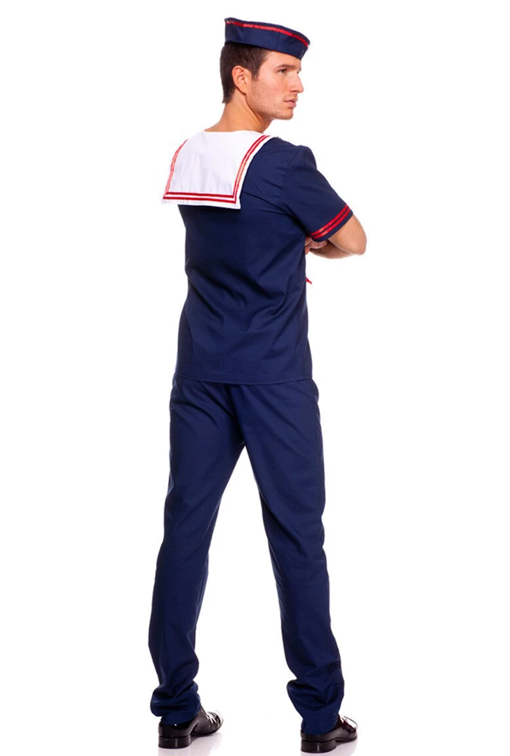 Ahoy! Sail away in our Men’s Navy Sailor Costume! Includes short sleeved navy shirt with attached red necktie and white shoulder throw and navy pants with elastic waist band.
