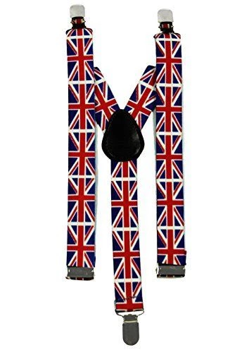 Long live the Queen! These Union Jack Flag Suspenders are the perfect accessory for lovers of tea and fish and chips.