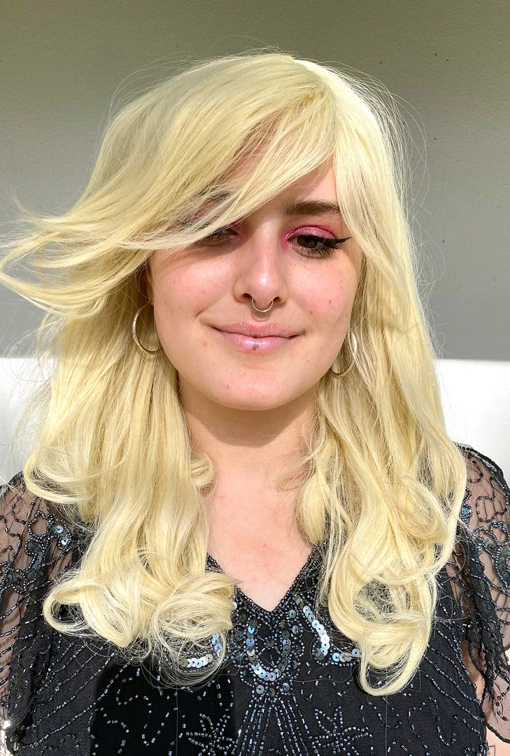 This beautiful thick deluxe wig is Mid length and features a wispy front fringe, fake scalp and an adjustable sizing.