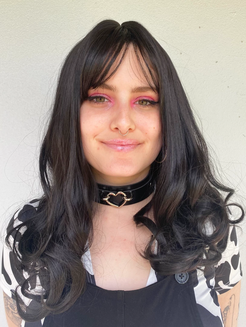 This beautiful curly shoulder length wig has a Deep Dark Brown colour! Perfect to change up your look or for your next party and event!