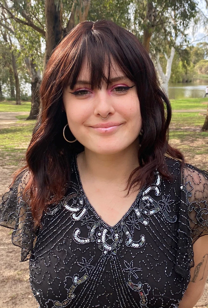 This beautiful Dark Mahogany Brown thick deluxe wig is shoulder length with soft wave and features a wispy front fringe, fake scalp and adjustable sizing.