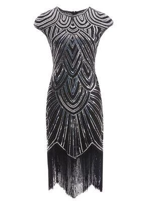 Best Dance Black And Silver Beaded Cap Sleeve Great Gatsby Dress