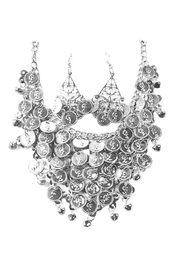 Best Dance Silver Coin Necklace And Earrings Set