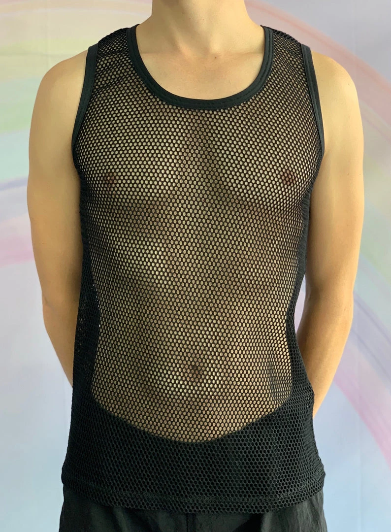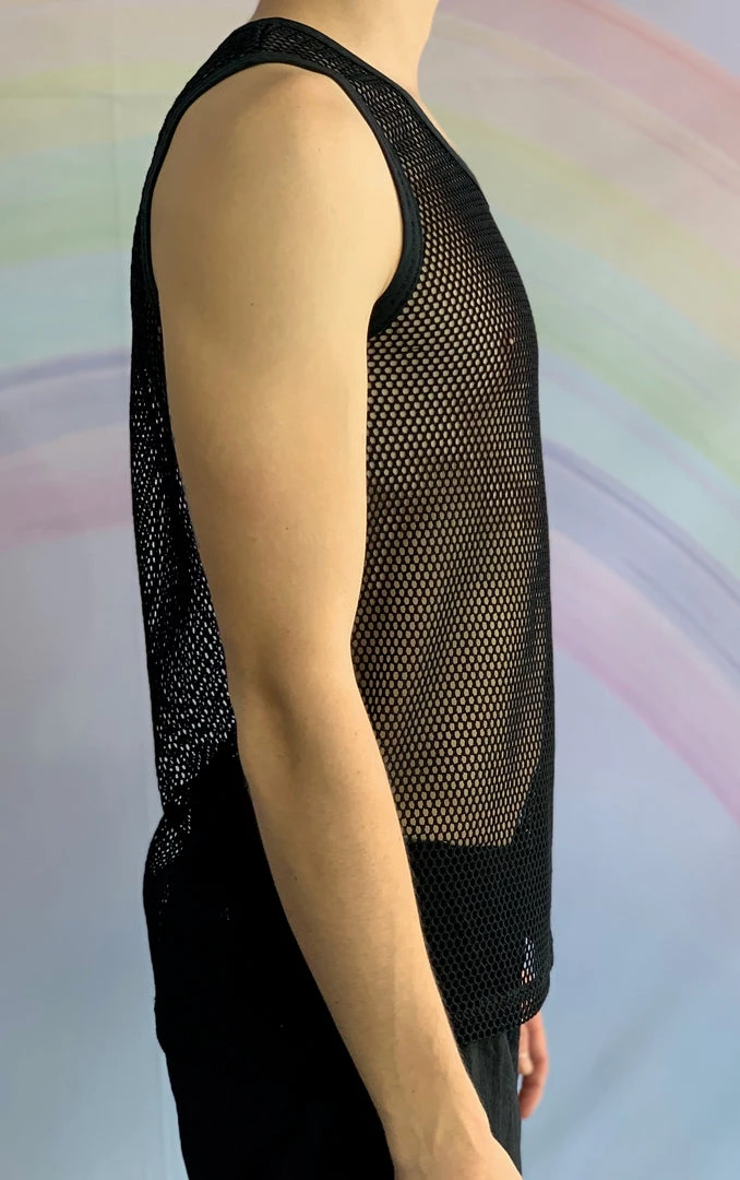 Sleeveless black fishnet top, perfect for this years pride festivities or your next festival!