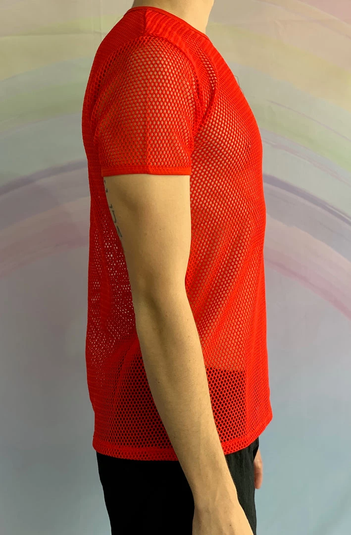 Short sleeved bright red fishnet top, perfect for this years pride festivities or your next festival!