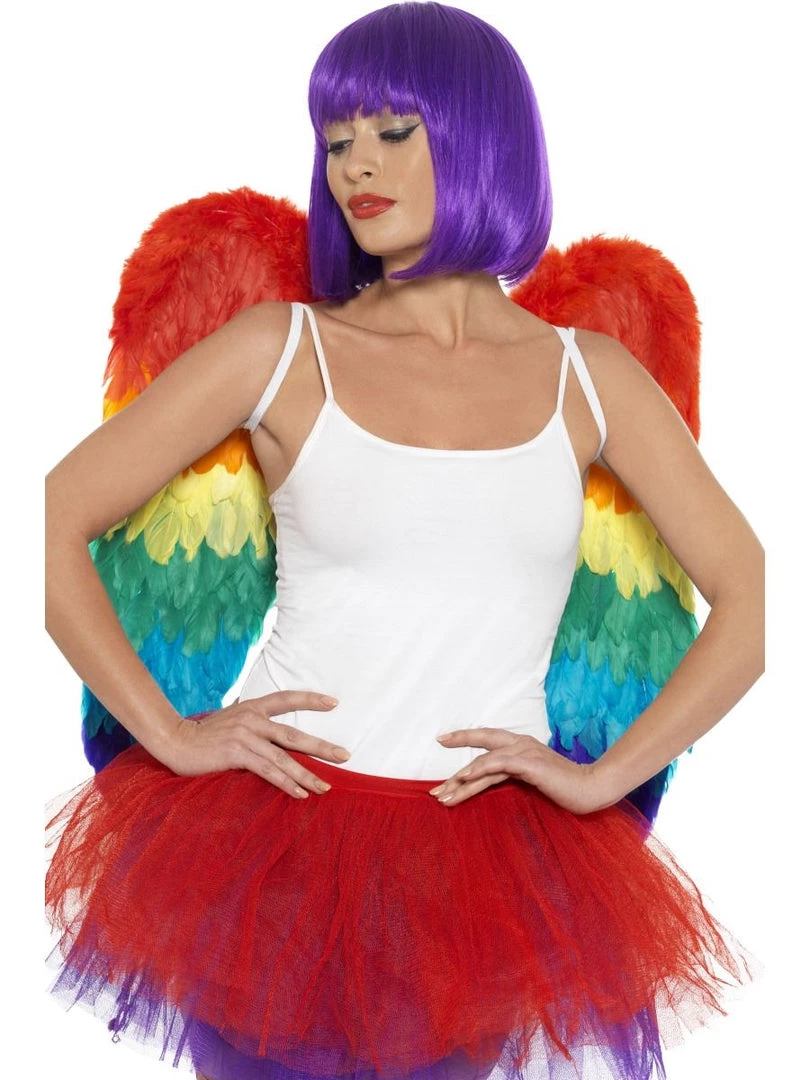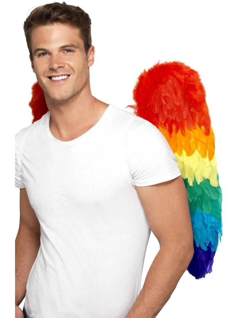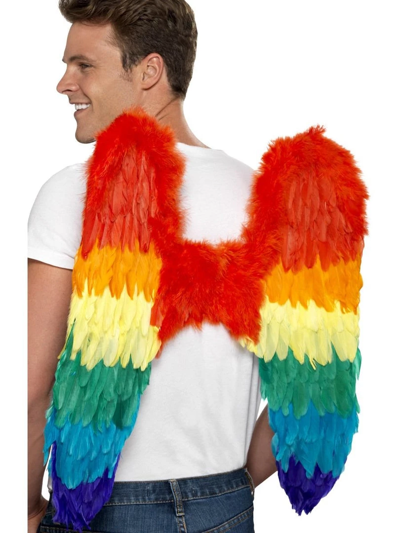 Stand out with these rainbow feathered wings! Wear with a bright rainbow outfit or with all white to make them the feature. Pair it with our Rainbow Angel Halo