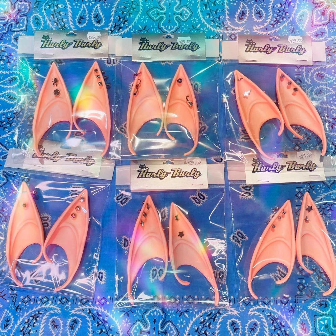 Add a little extra to your classic elf ears with some piercings! These assorted elf ears come in long, short, pink and tan.
