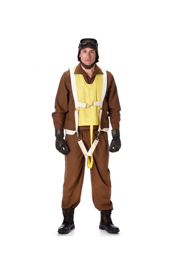This deluxe men’s costume includes soft helmet and goggles, top, pants, gloves and yellow life jacket.