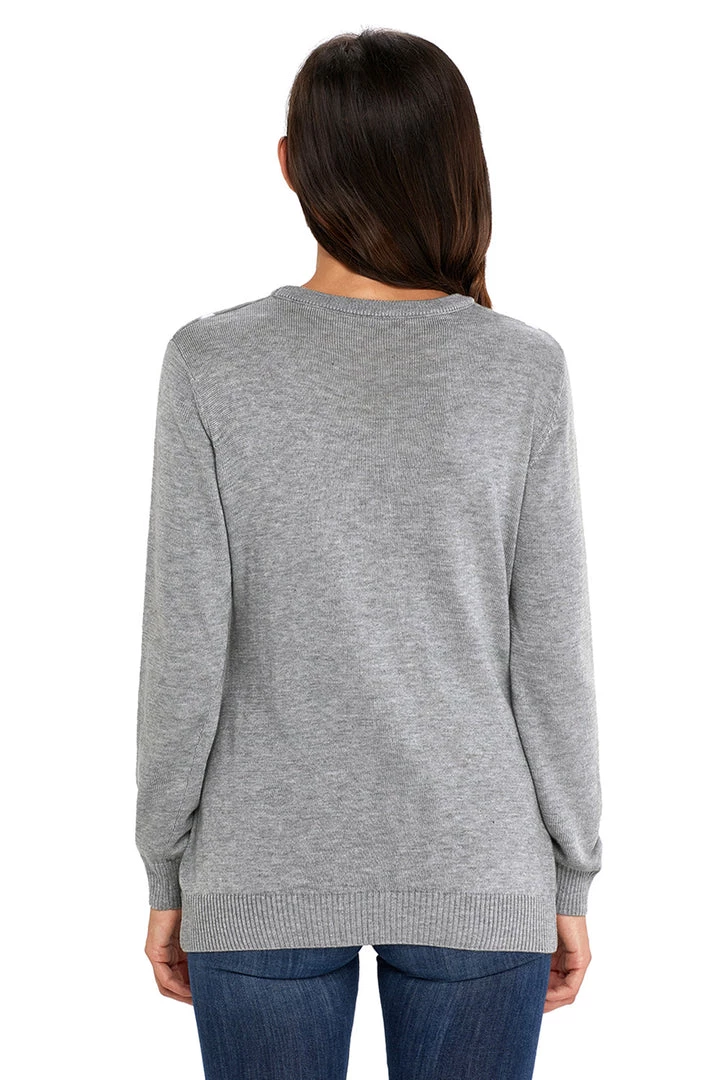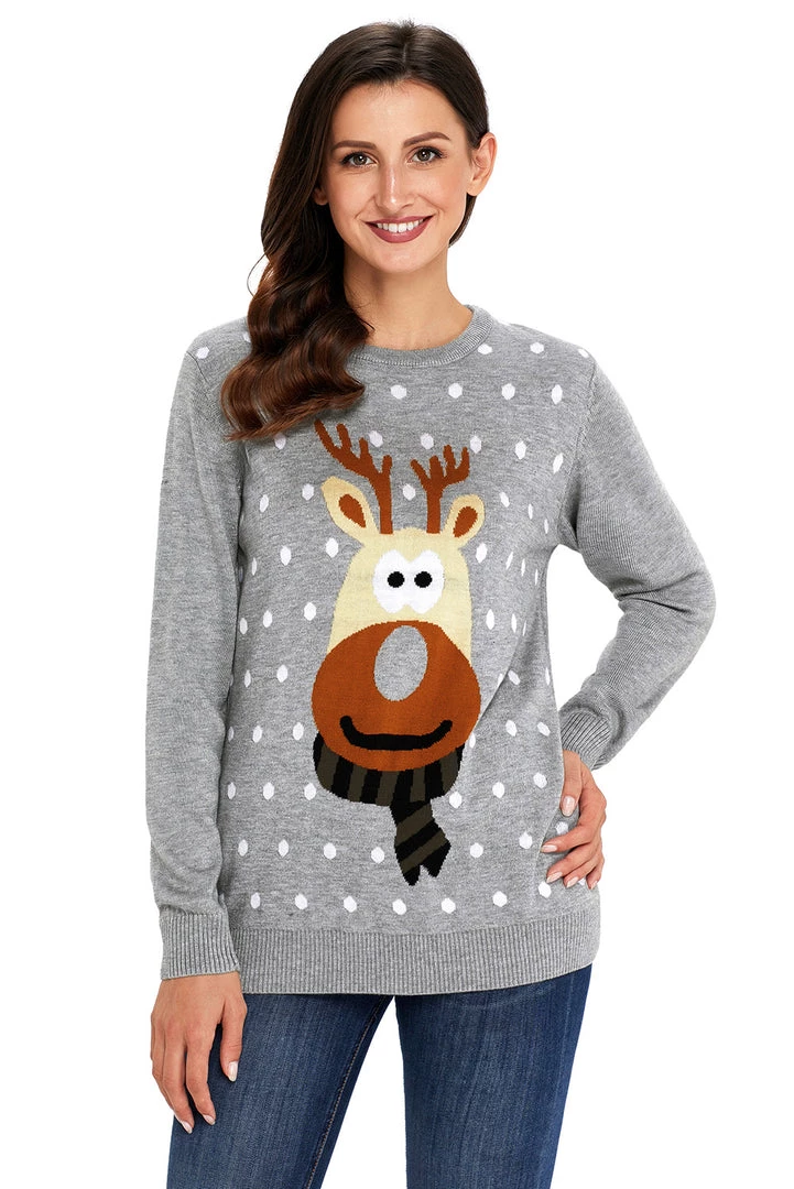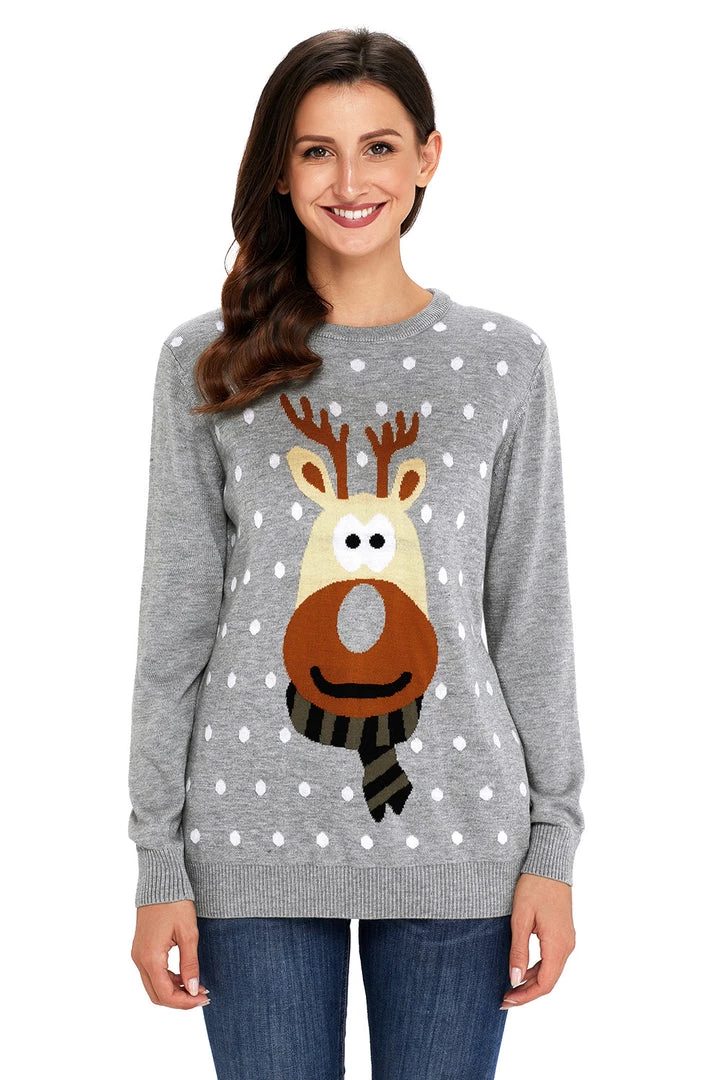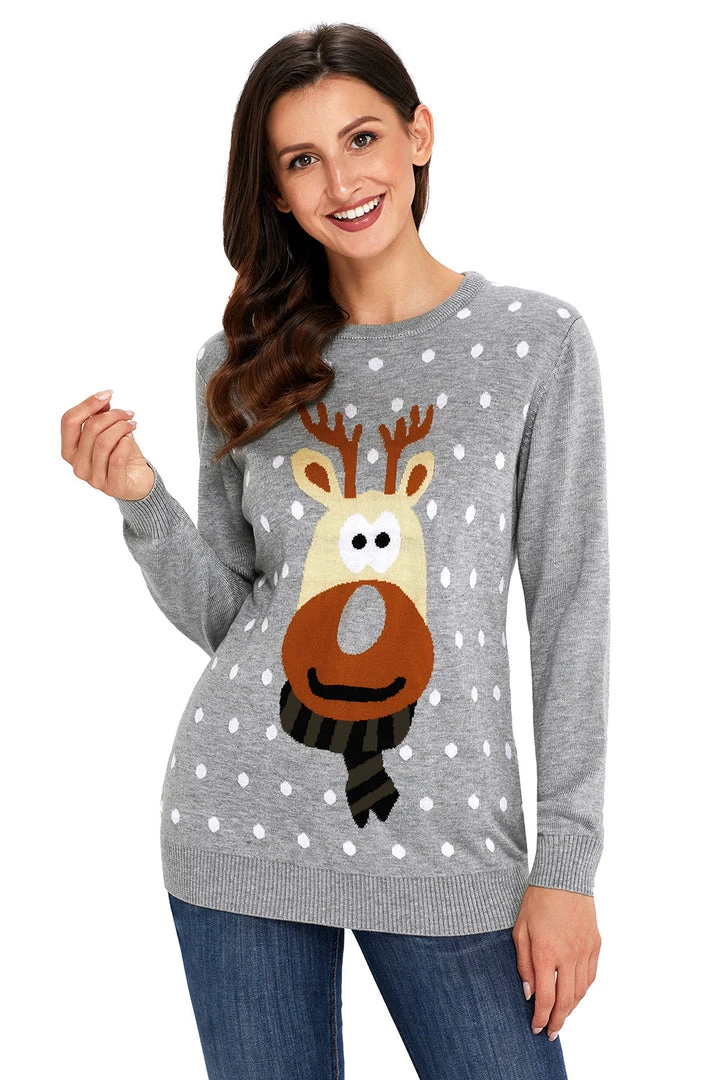Dear Lover Grey Reindeer Knitted Ugly Christmas Pullover Outerwear