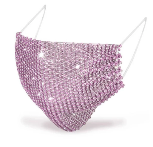 Express yourself and bling up up your plain mask with this lilac sparkly rhinestone face mask cover, made from glow-mesh fabric.Â