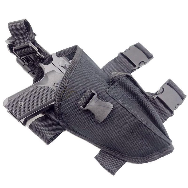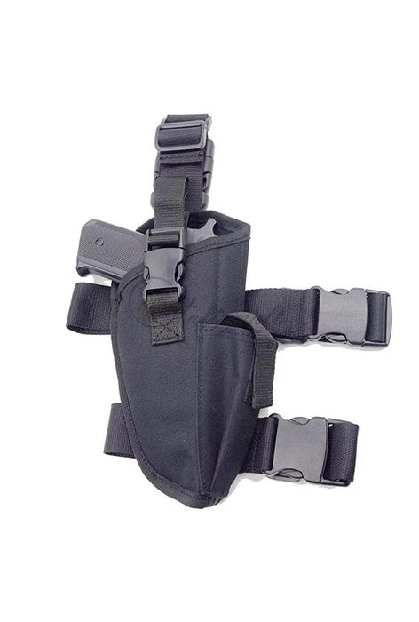 Right handed leg gun holster made of a durable 800D nylon. Great to finish off a military or army themed costume!