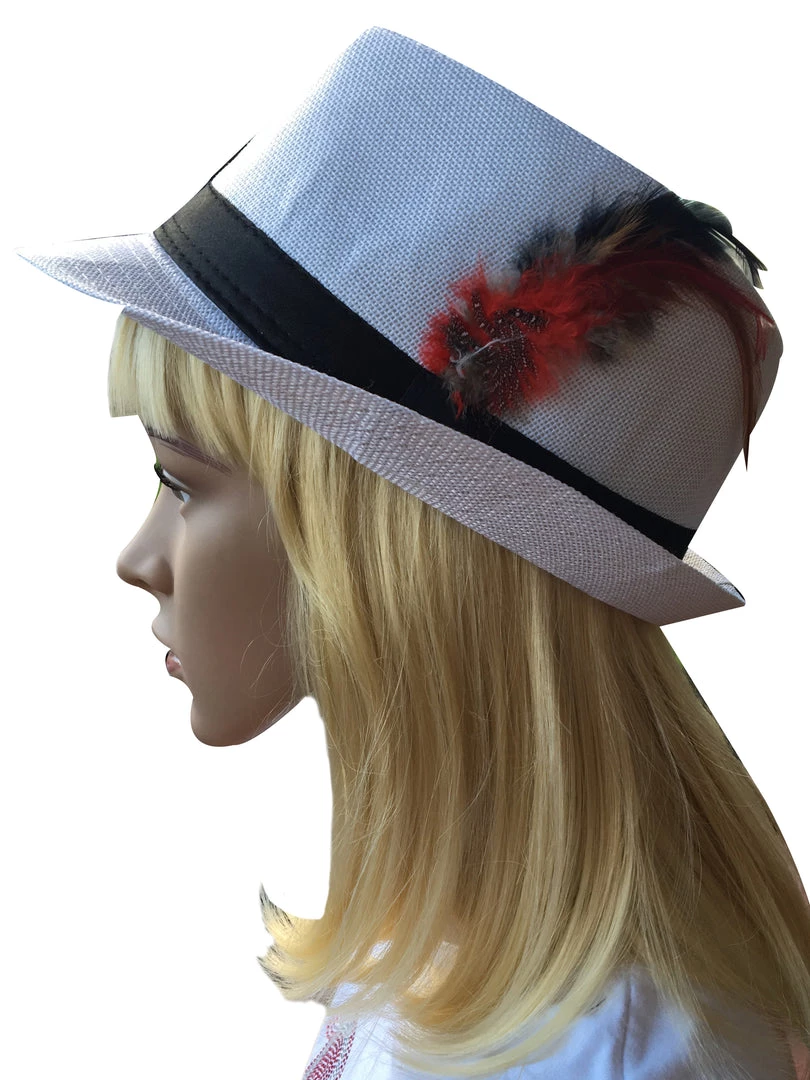 DHGate White Trilby Hat With Feather Oktoberfest Costumes And Accessories