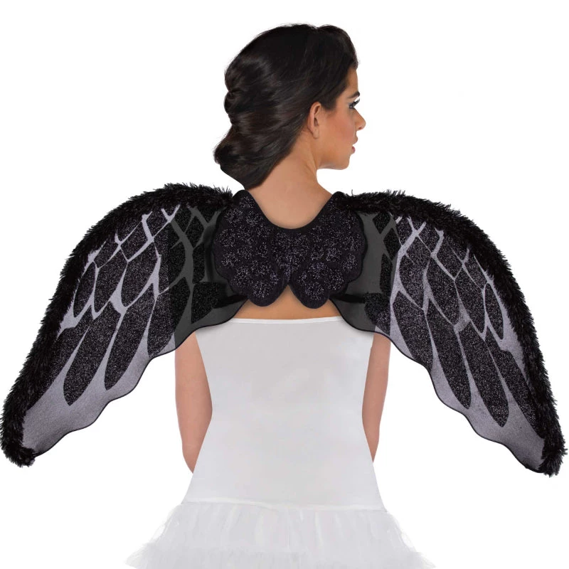 Need some wings for your dark angel costume but not a fan of the feathered variety? These glittery marabou wings are perfect for any dark angel or fairy costume, with a faux fur trim around the edge.