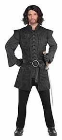 Black tunic with stand up collar, short sleeves and lace-up front.