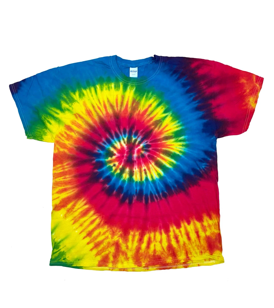 This fun vibrant tie dye pattern is printed on one of our high quality 100% cotton Gildan t-shirts.