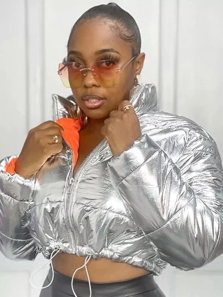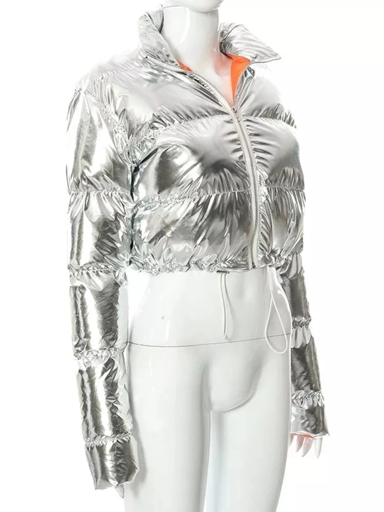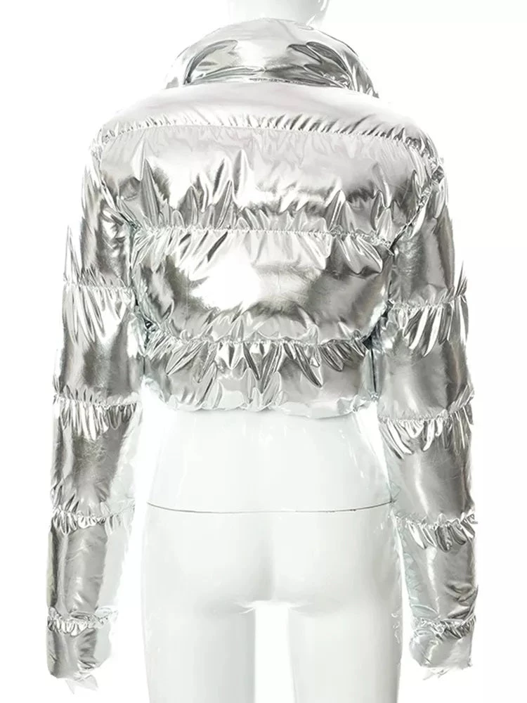 Global Lover Metallic Silver High Neck Puffer Jacket