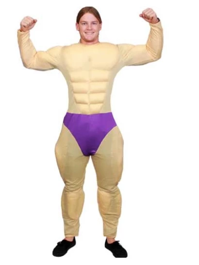 This padded muscle man full body suit is a hilarious costume for your next party. A perfect base for many characters including superheroes, Arnie, bodybuilders, Athletes and more.