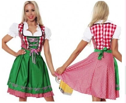 This knee length dress is gorgeous and eye catching. The gingham and checked red pattern contrasts so nicely against the bright green apron.