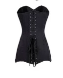 Plain black satin steel boned overbust corset with, 8 clip busk closure and classic lace up back for the perfect fit.