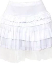 Layered cotton and tulle 80’s inspired rara skirt in white! Pair with some lace leggings and gloves for the perfect 80’s look!