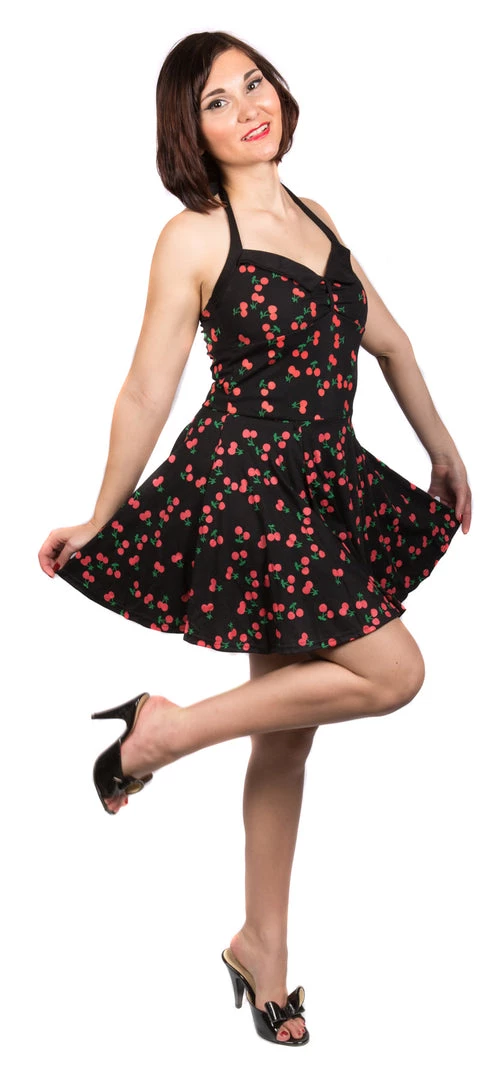 Very flirty dress covered in the cutest cherry print you ever will see! Easy and comfortable enough to run out of the house in, or dress it up with heels and accessories for a night out! Made of cotton/elastane