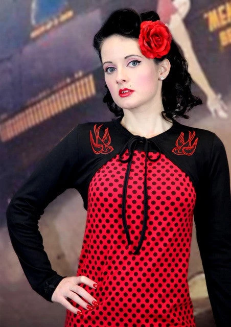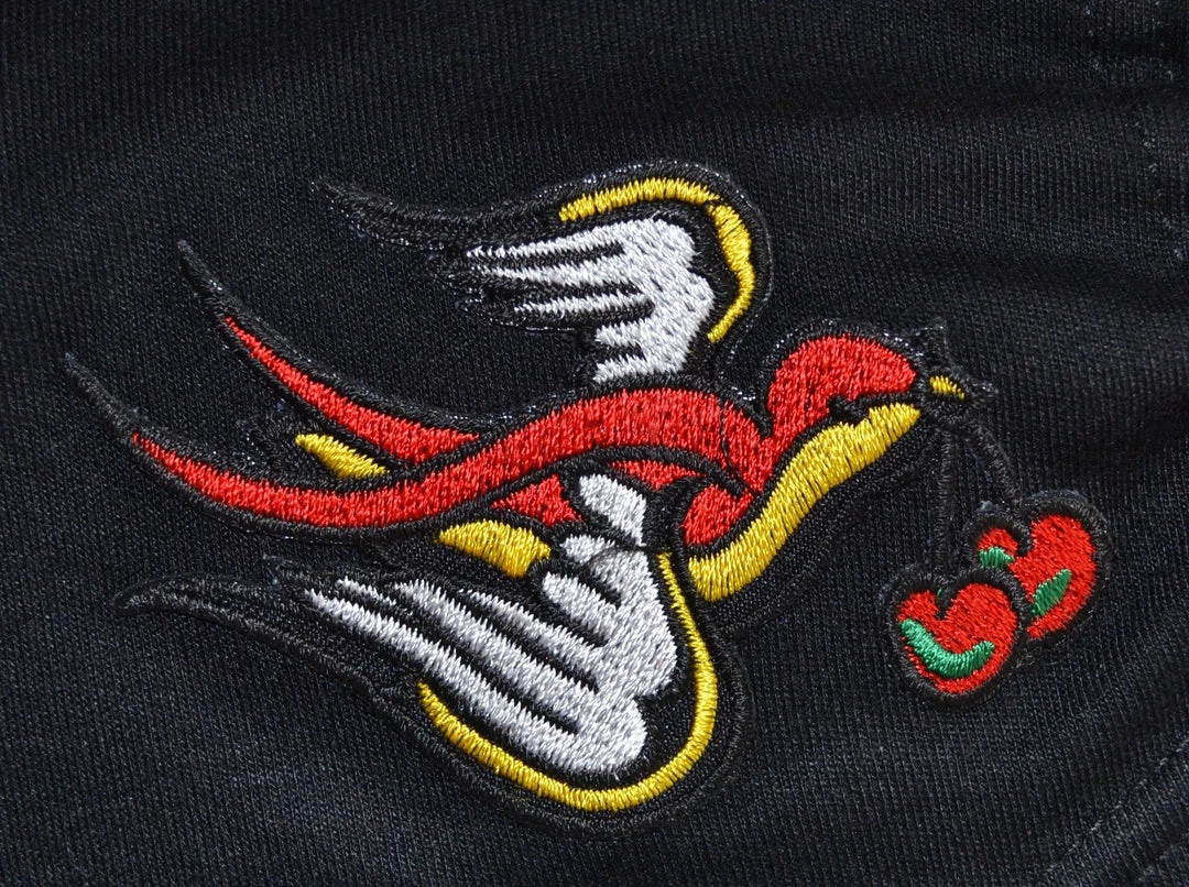 Shock Culture black shrug with iron on embroidered swallows.