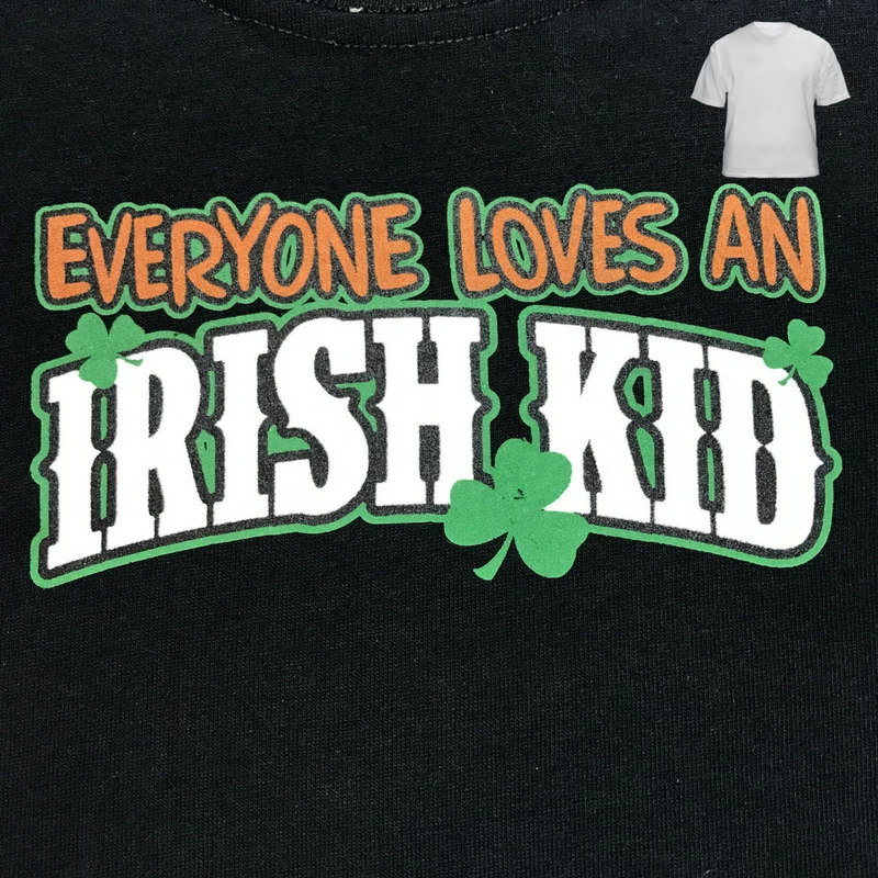 Black Kid’s tee featuring a bold print that reads “Everyone loves an Irish Kid”