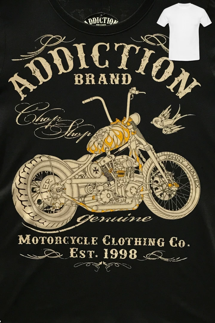 Hurly-Burly (D) T-Shirts Addiction: Chop Shop Motorcycle Men’s T-Shirt