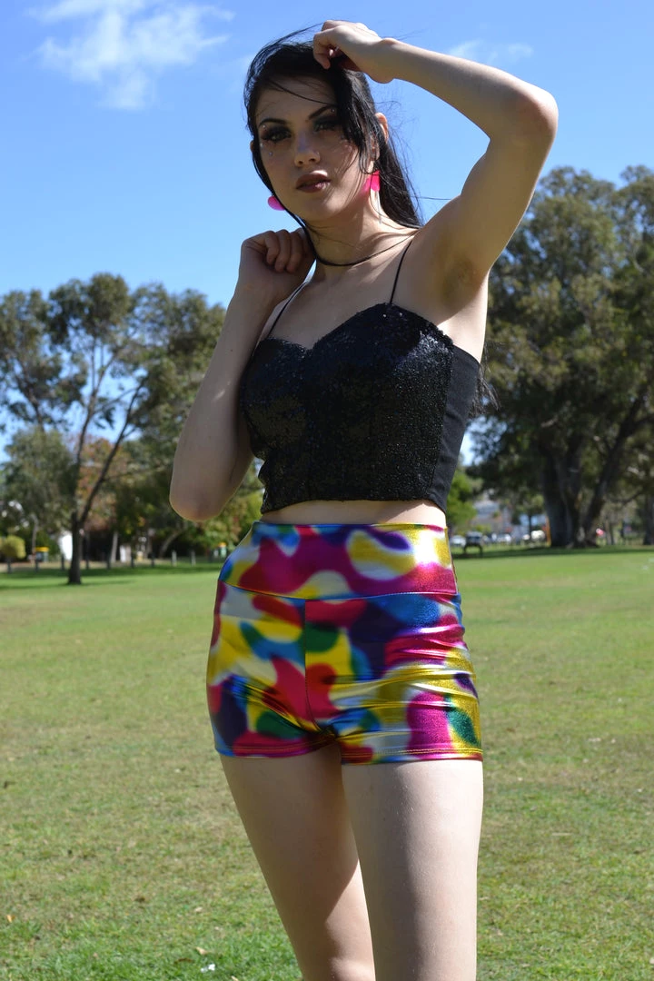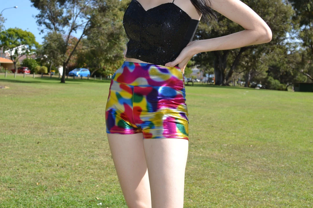 Hurly-Burly Festival Wear Metallic High Waisted Rainbow Booty Shorts