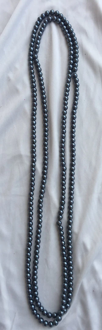 30 inch long dark grey pearl necklace. Wear doubled over for a layered look.