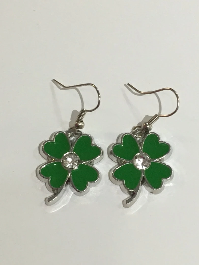 Super cute earrings with a shamrock and diamanté feature. Perfect for Saint Patrick’s Day!