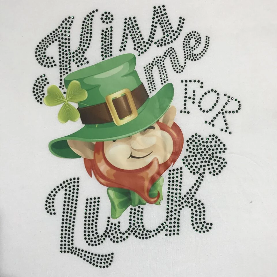 Get ready for Paddy’s day in this awesome white cotton unisex shirt! Featuring green diamante text and a cartoon leprechaun!