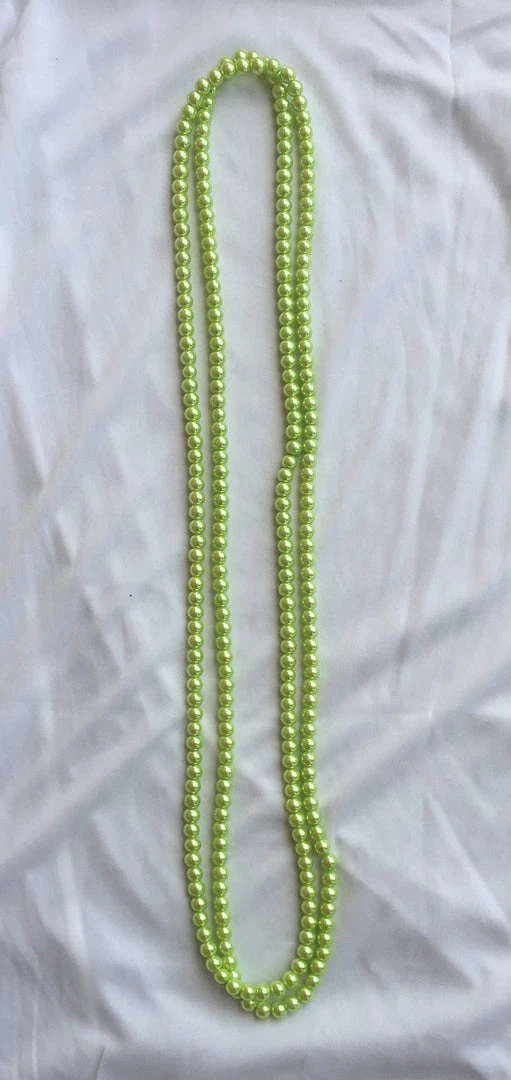 30 inch long lime green coloured pearl necklace. Wear doubled over for a layered look.