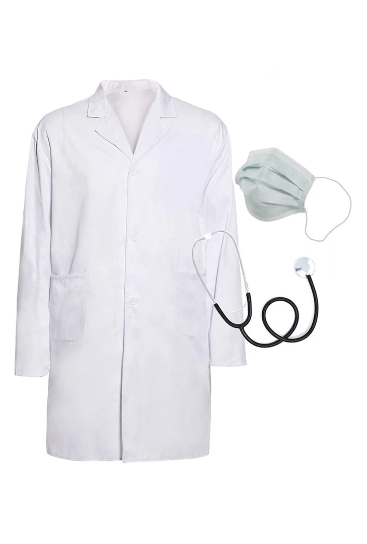 Our lab coat is the perfect costume base. Simply add your own clothes underneath and you will be ready to make the rounds. This kit includes a Coat, Stethoscope & Mask Coat