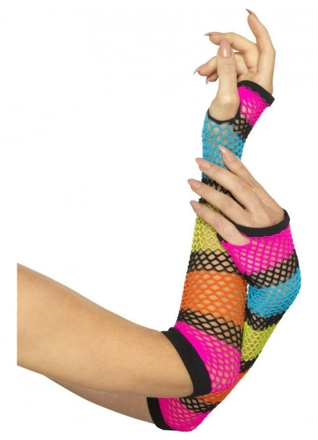 Hurly-Burly Neon Fishnet Gloves Black Stripe