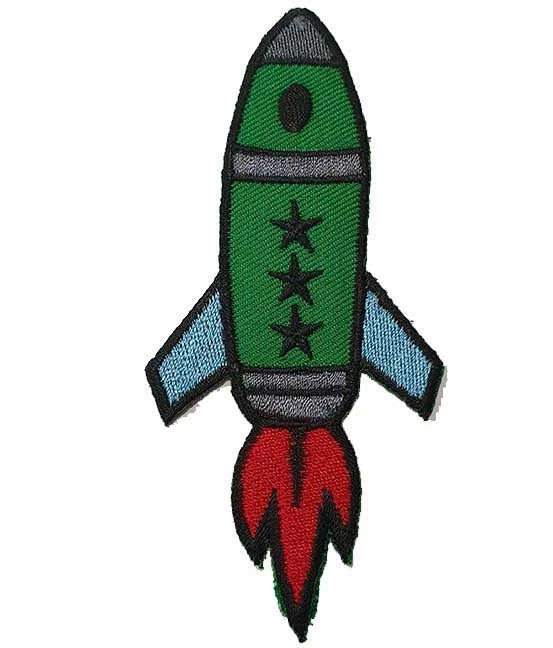 Let’s Fly to the moon together in a green rocket ship! Perfect for Space Lovers and to make your jacket or jeans really fly!
