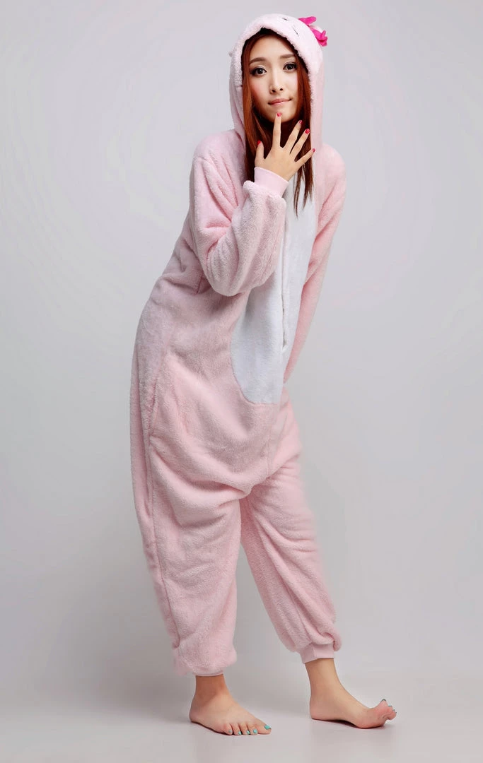 STAY WARM THIS WINTER WITH THIS ADORABLE HELLO KITTY ONESIE MADE WITH A SUPER SOFT CORAL FLEECE. THIS ONESIE COMES COMPLETE WITH A FACE DETAIL ON THE HOOD. COOKIE NOT INCLUDED.