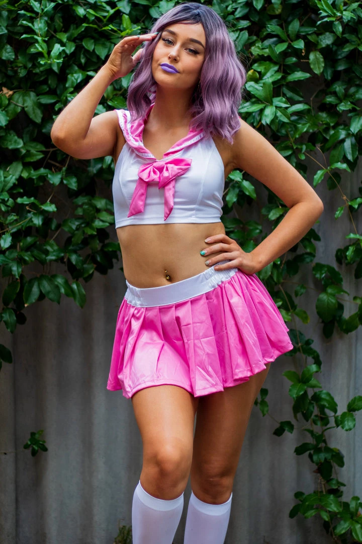 The Pink Sailor Costume. Includes Crop Top and Skirt. Size small.