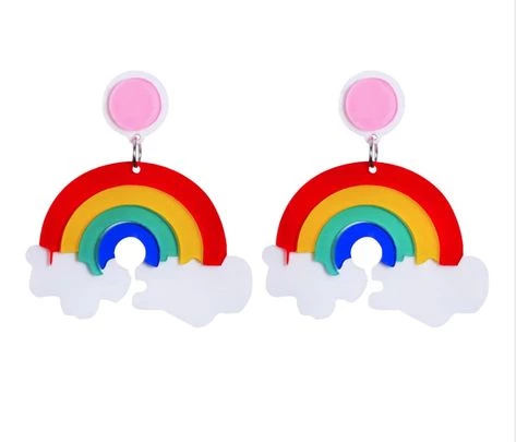 Feel just like a rainbow in these colorful earrings! They are laser cut acrylic, very light weight and Silver plated earposts. 1.5″ x 2″