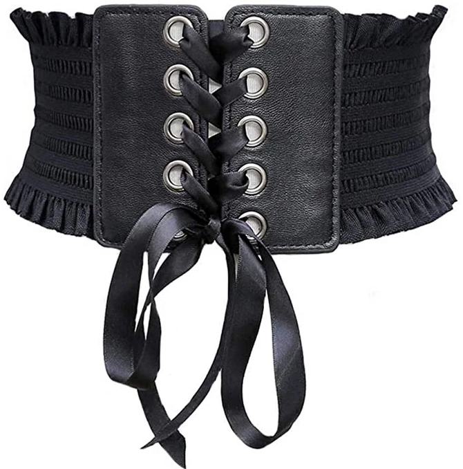 accessorize any outfit with this cincher belt to give you that perfect hourglass figure. Features ribboned corset style lacing at the front and a ruffled elastic band with a press stud closure at the back.