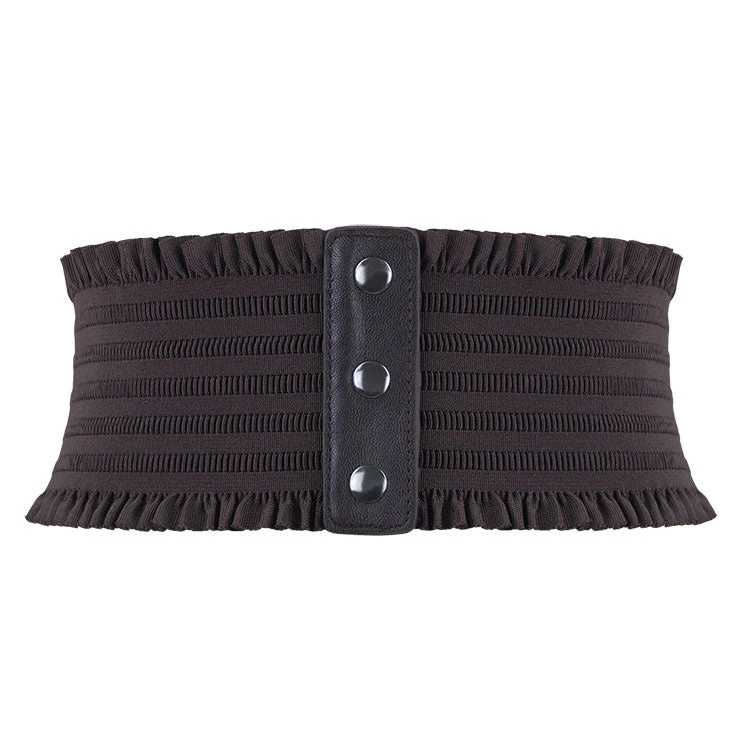 accessorize any outfit with this cincher belt to give you that perfect hourglass figure. Features ribboned corset style lacing at the front and a ruffled elastic band with a press stud closure at the back.