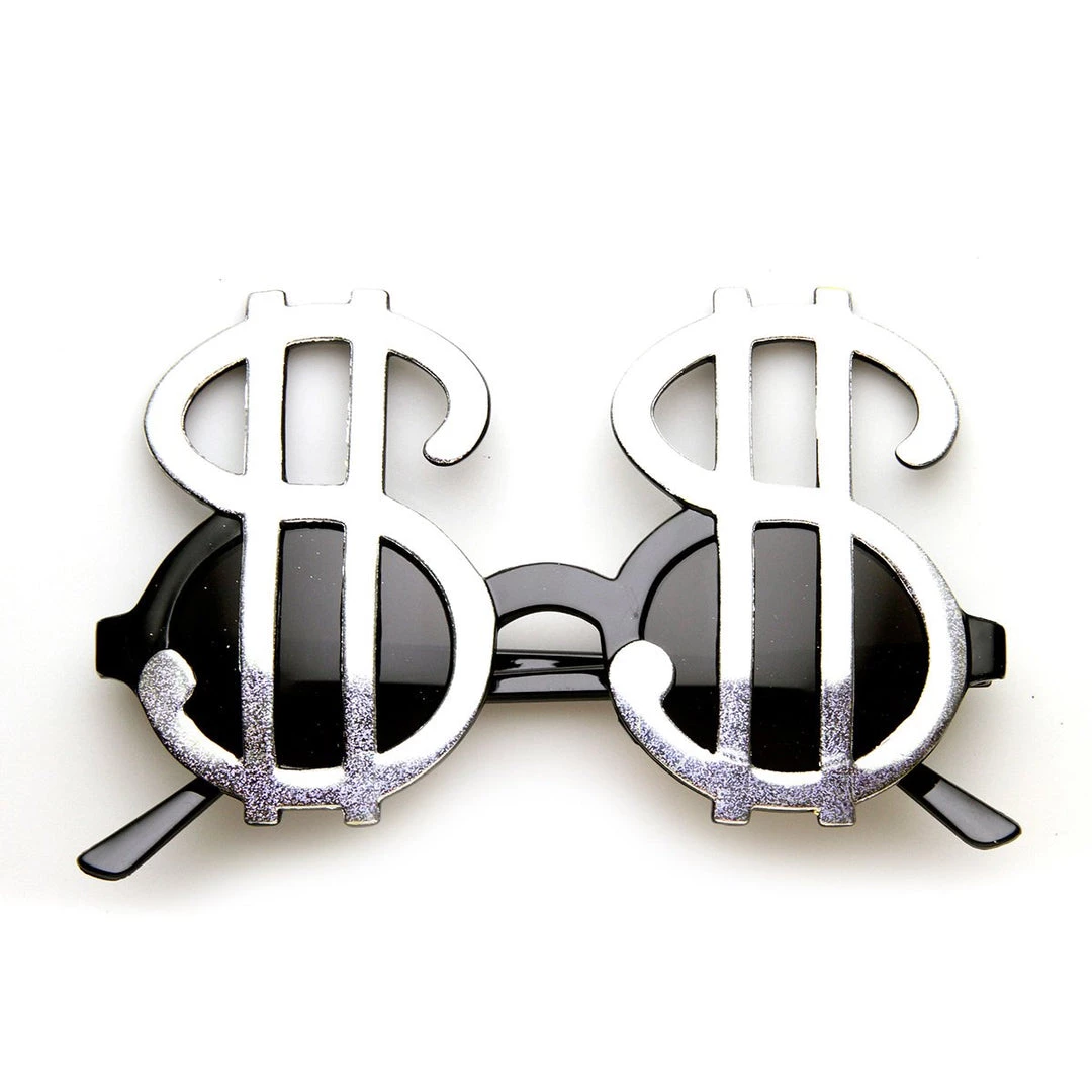 Hurly-Burly Silver Dollar Sign Glasses