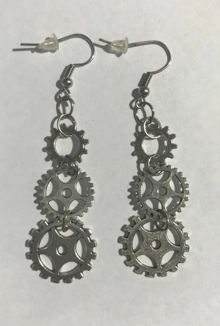 Hurly-Burly Silver Steampunk Cog Earrings (B) Jewellery
